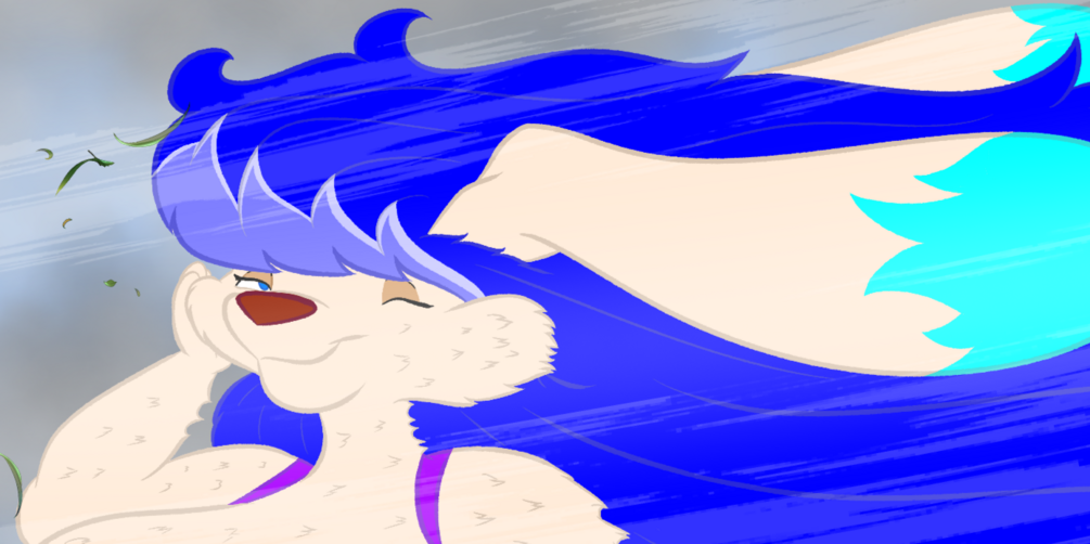 Bianca is enjoying a nice strong gale force wind in her hair and fur.